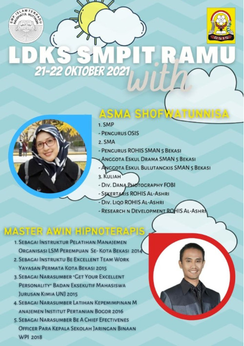 Pada tanggal 21-22 Oktober 2021 OSIS SMPIT Raudhtaul Muttaqin berhasil melaksanakan kegiatan LDKS (Latihan Dasar Kepemimpinan Siswa). LDKS kali ini di isi dengan pembicara yang sangat hebat dan briliant. Yaitu, Kak Asma dan Kak Awin yang memiliki segudang bakat dan motivasi. Seluruh anak-anak Kelas 7 mengikuti LDKS tahun ini dengan antusias meskipun harus terkendala jarak (online) tapi kegiatan berjalan lancar dan sukses.